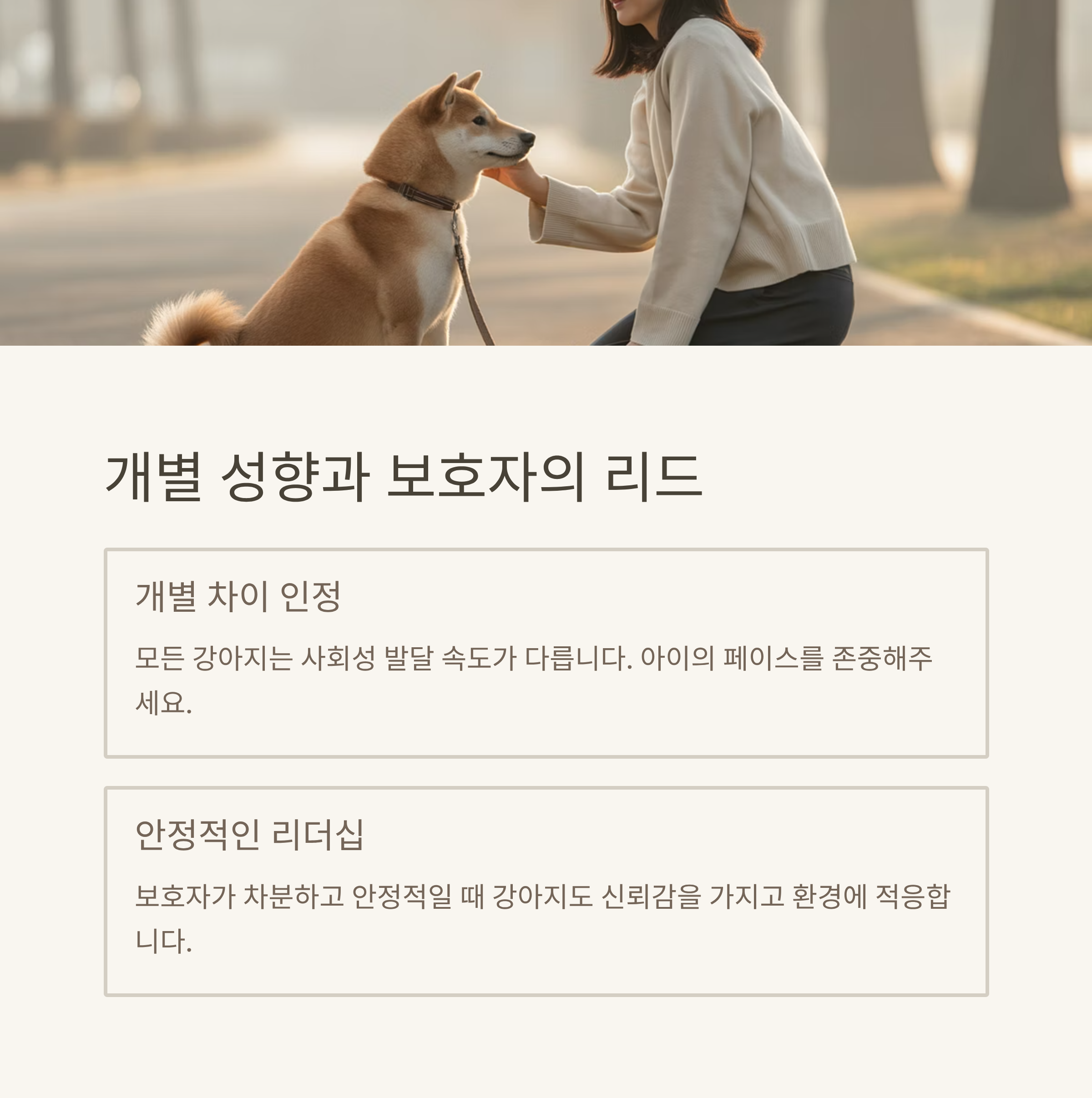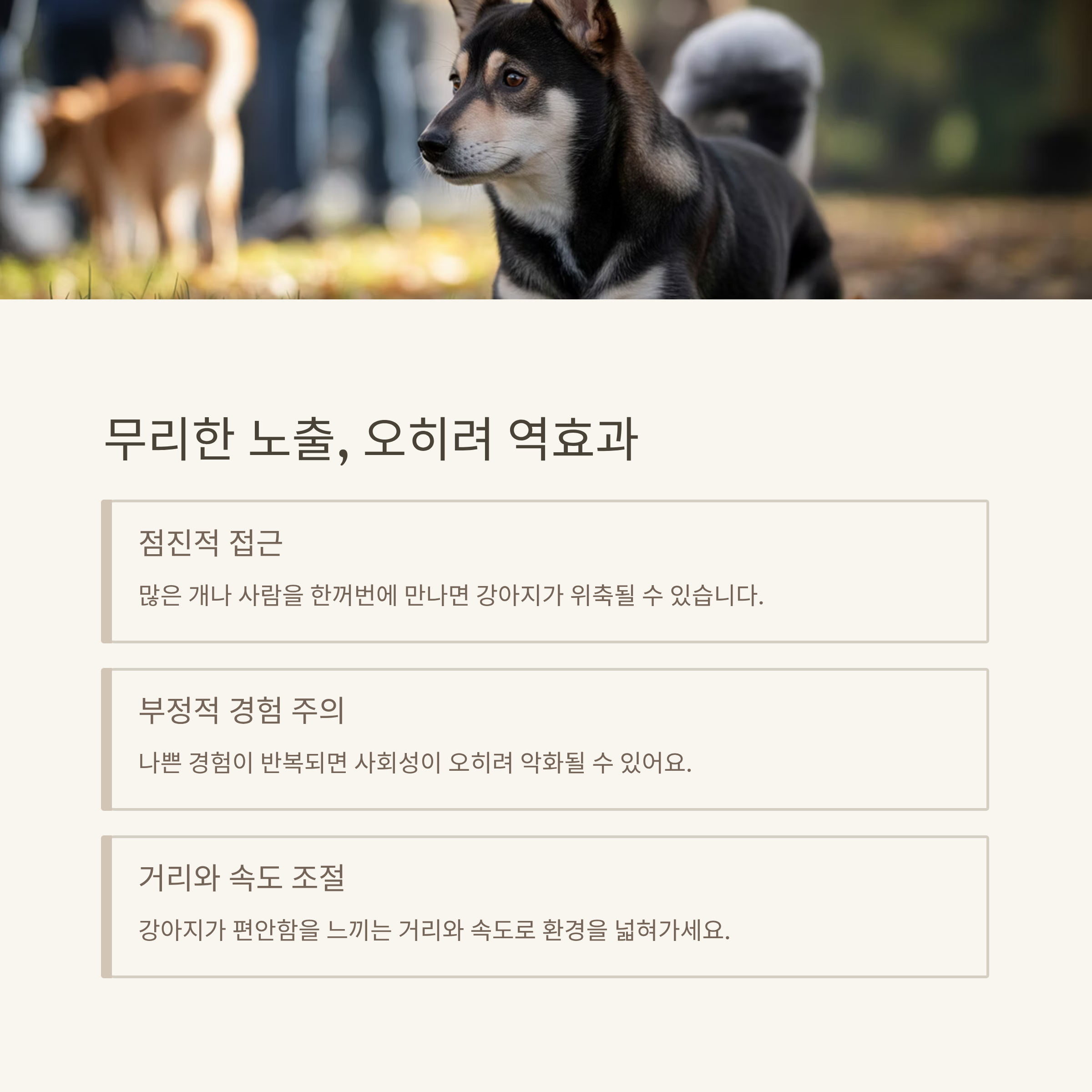 일정한 산책은 기본이 되지만, 다양한 자극과 만남이 함께 이루어질 때 사회성 향상에 실질적인 도움이 됩니다.