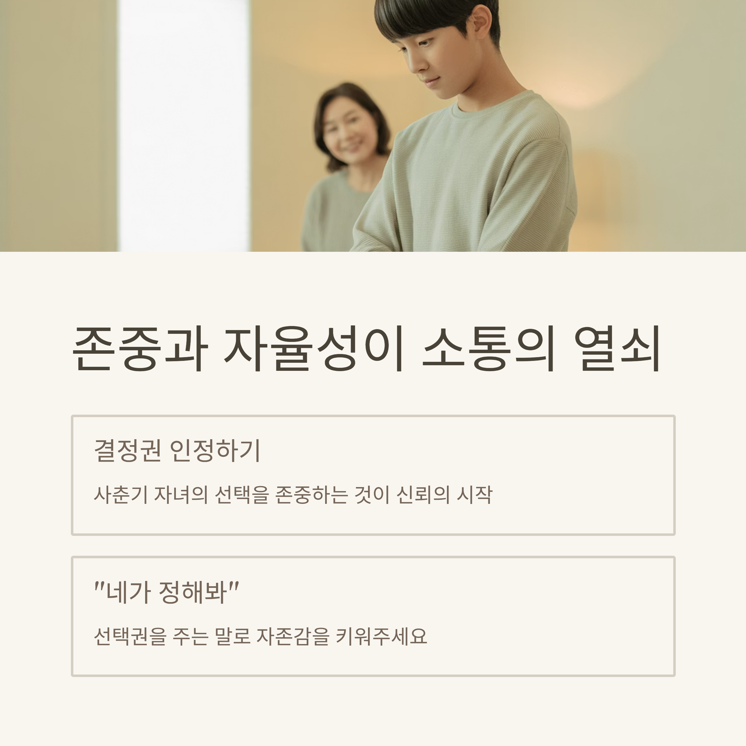 자녀와의 소통에서 겪은 어려움이나 직접 실천해본 소통 방법이 있으신가요? 댓글로 함께 나눠주세요. 서로의 경험이 큰 도움이 될 수 있습니다.
