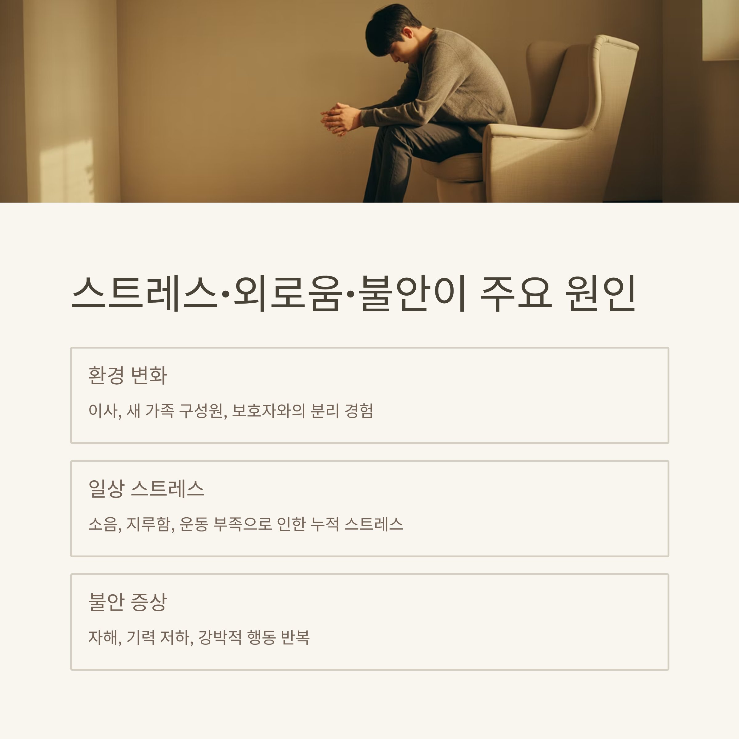 심리적 원인 스트레스, 분리불안, 공포, 관심 요구 등 내면의 문제