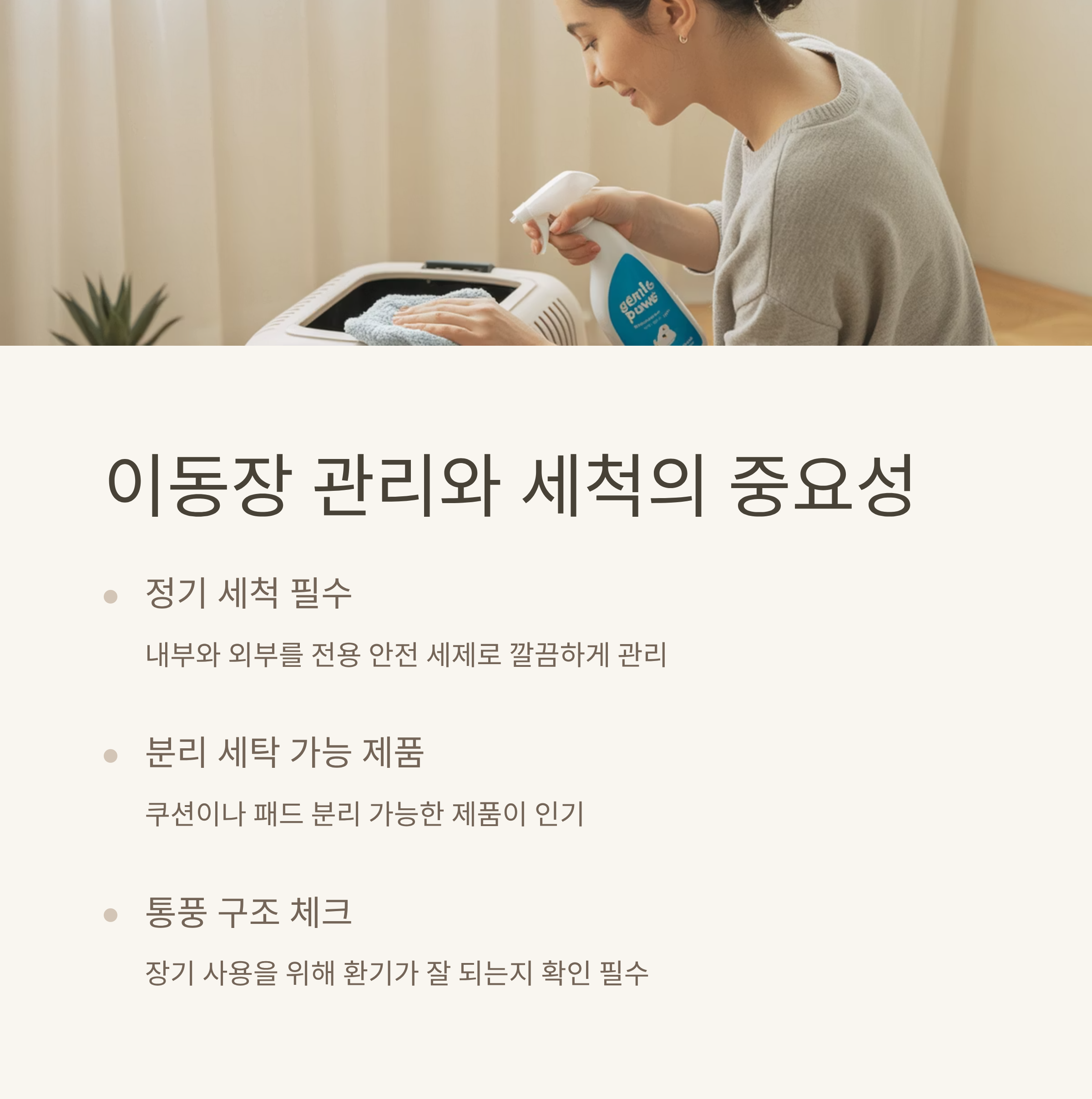 | 체크 포인트 | 통기성, 출입구 구조, 세척 가능 여부 등도 중요합니다. |