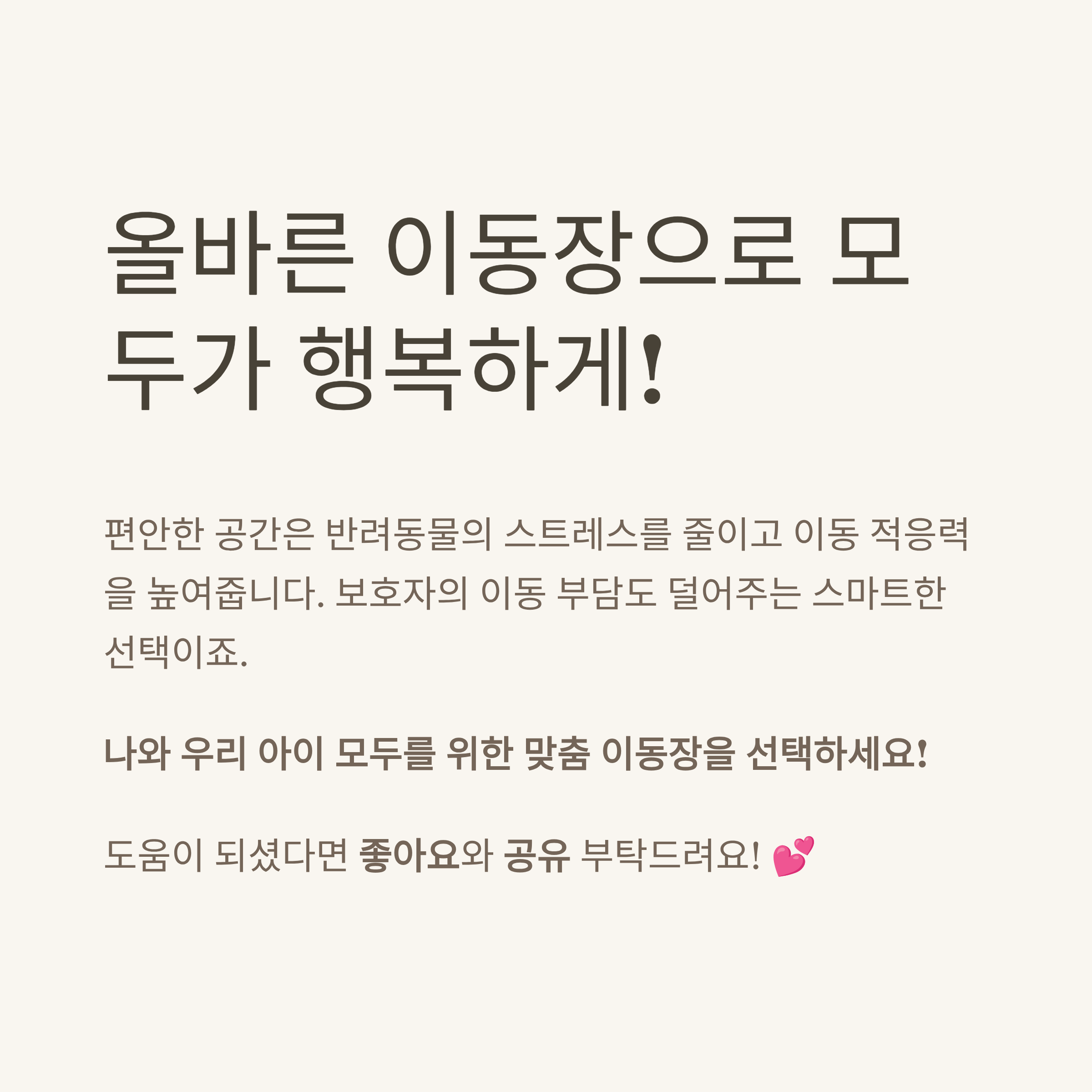 어떤 이동장을 사용하고 계신가요? 직접 사용해본 경험이나 반려동물의 반응이 어땠는지 댓글로 공유해주세요. 다양한 보호자들의 이야기가 반려생활에 큰 도움이 됩니다.