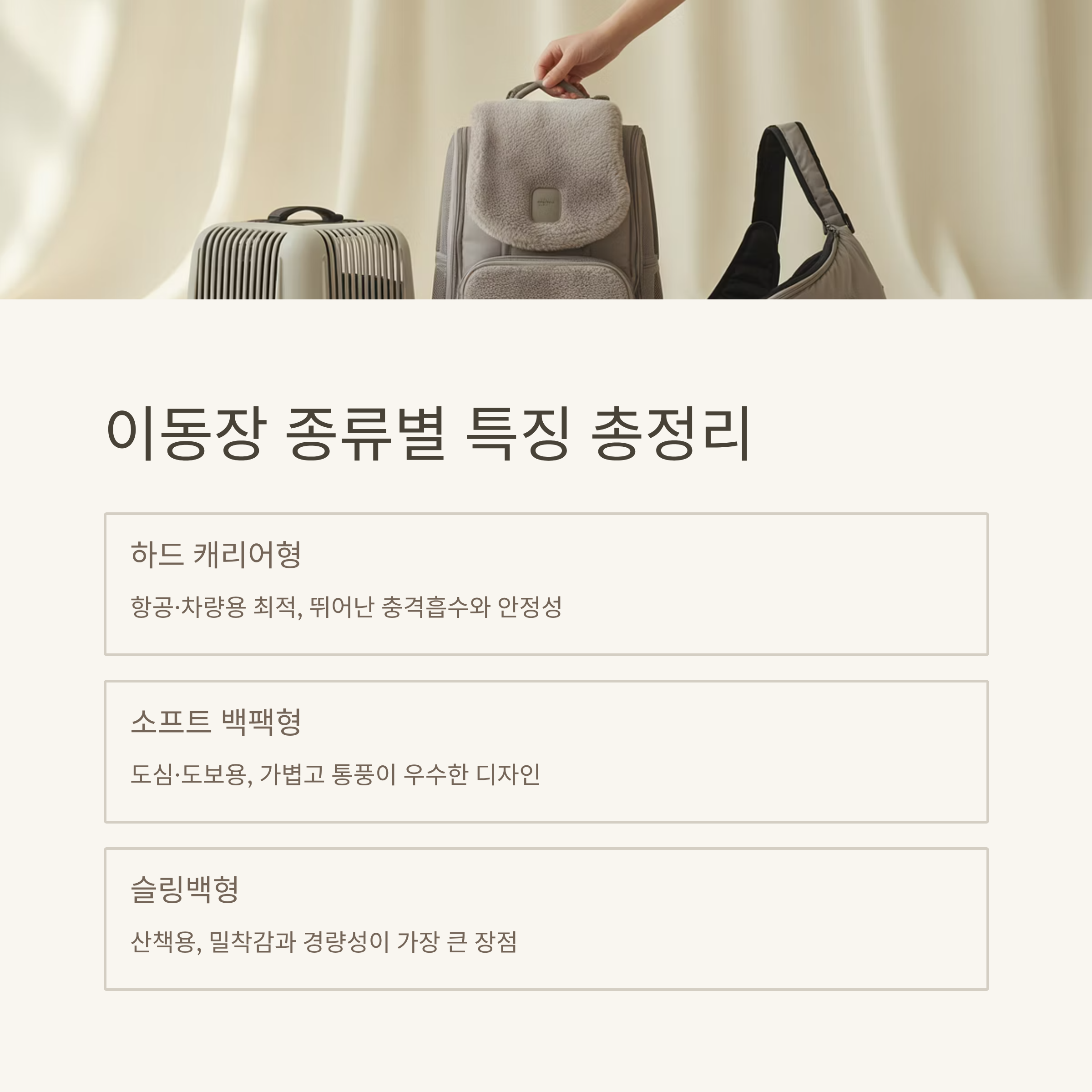 이동장 종류 하드형, 소프트형, 백팩형 등 다양한 형태가 있습니다.
