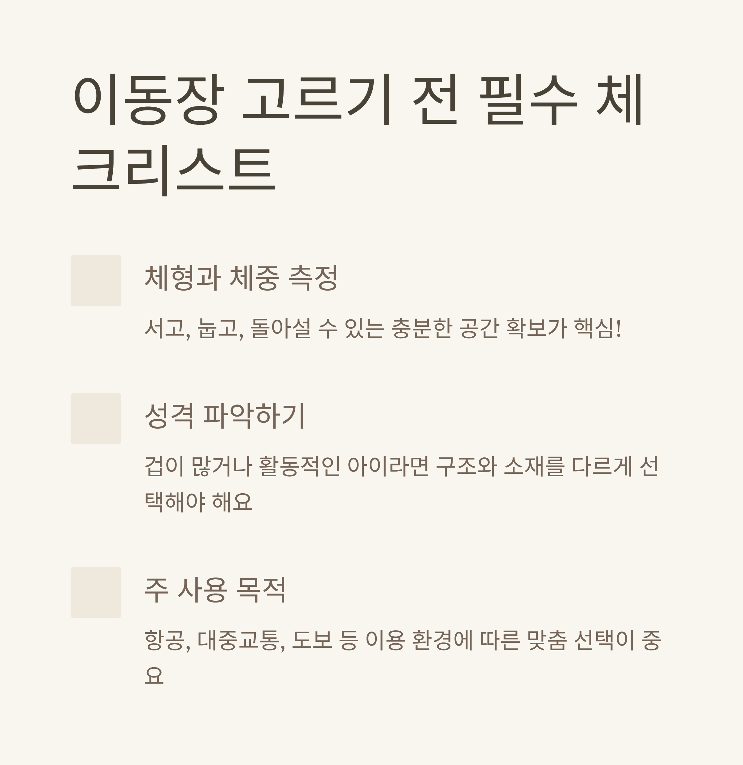 | 이동 중 자세 유지 가능한 안정적 공간 제공 | 통풍이 원활해야 심리적 안정에도 긍정적 | 이동수단과 보호자 라이프스타일 고려 필요 |