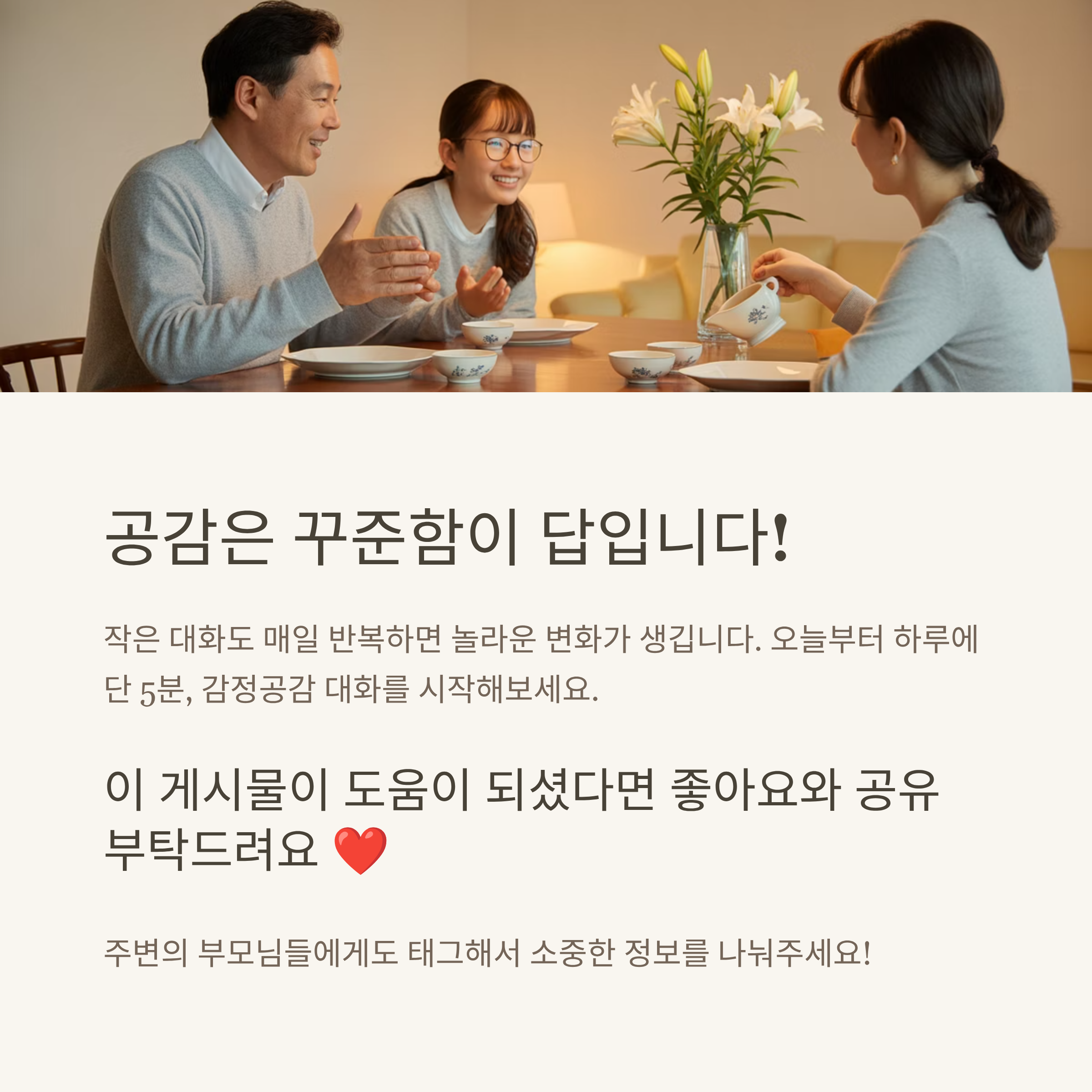 여러분만의 공감 대화 팁이 있다면 댓글로 나눠주세요. 다른 부모에게도 큰 힘이 될 수 있습니다.