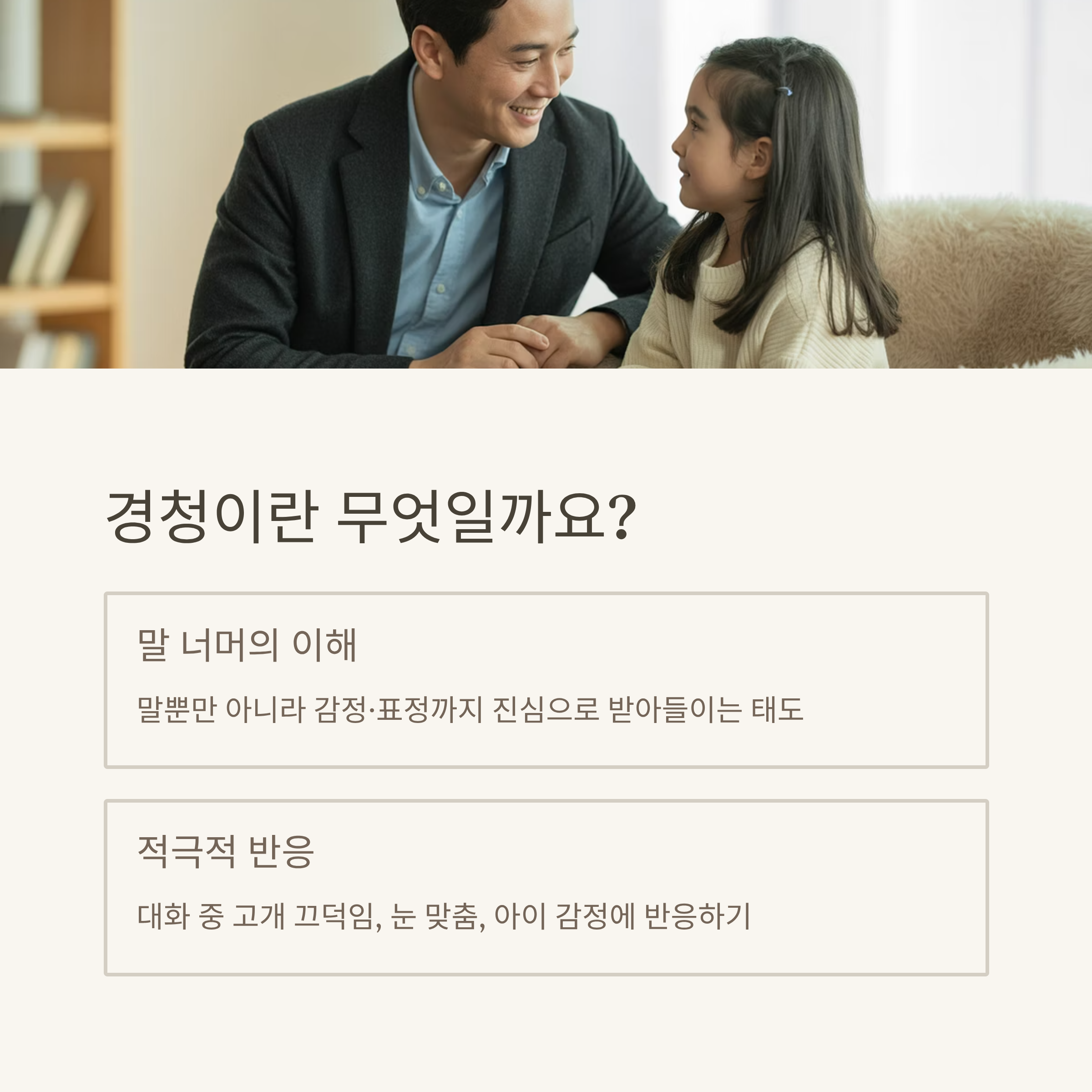 | 경청의 의미 | 판단 없이 아이의 말을 마음으로 듣는 태도 |