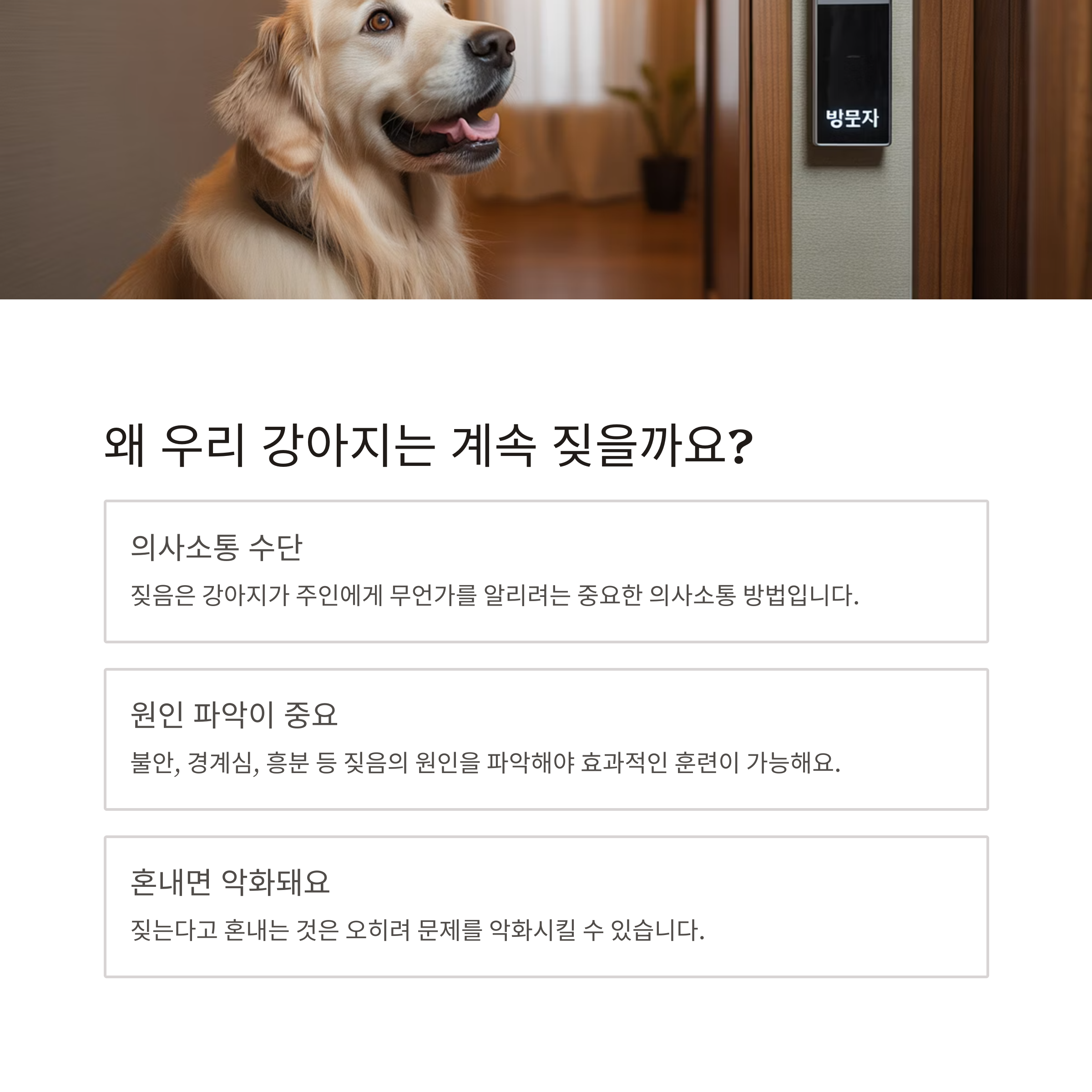 | 짖는 원인 | 불안, 흥분, 경계심 등이 주된 원인이에요 |